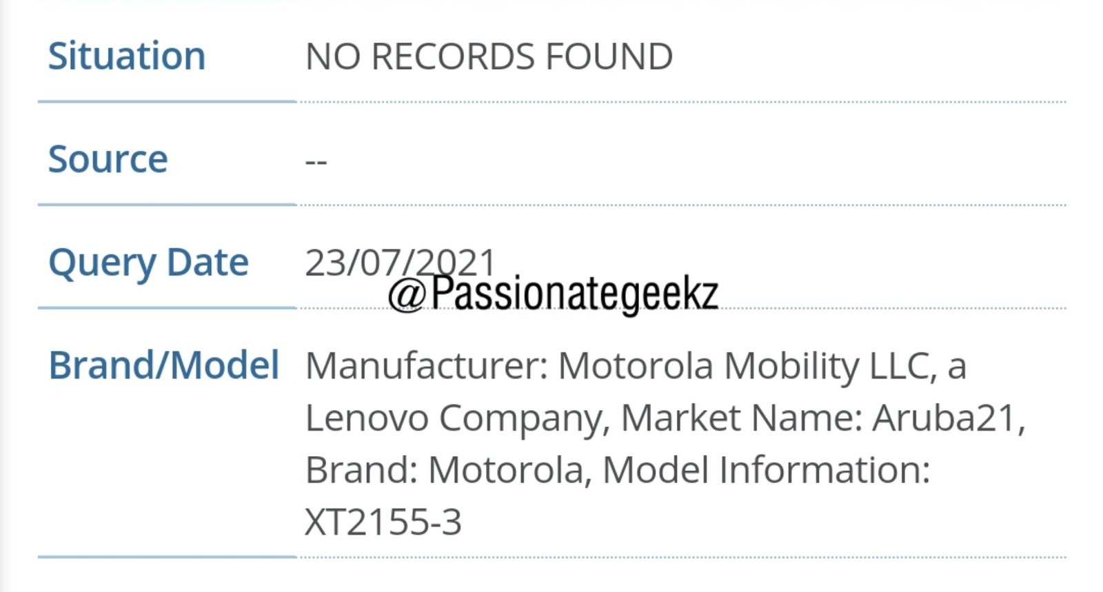In addition to the XT2155-3 and XT2155-4, the phone has more variants – XT2155-1, XT2155-5, XT2155-6, XT2155-7, XT2155-8, and XT2155-9. All the variants have been previously spotted on FCC and TUV certifications. The XT2155-1 was also spotted on the IMEI database with the “Aruba21” as the marketing name. FCC listing for the phone revealed that it has 4G LTE connectivity, Bluetooth, 2.4GHz Wi-Fi, and GPS. The Aruba21 has a battery that carries model number Tekk NT40.