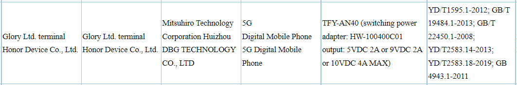 The 3C listings of the Magic V and Honor 60 SE show that these models may ship with a charger that has an HW-110600C00/1/2 model number. The charger supports up to 66W fast charging. On the other hand, the Honor X40i has appeared with an HW-100400C01 charger that supports up to 40W fast charging. The other thing that can be confirmed through the 3C certification is that the Magic V, 60 SE, and X40i are 5G-ready devices.