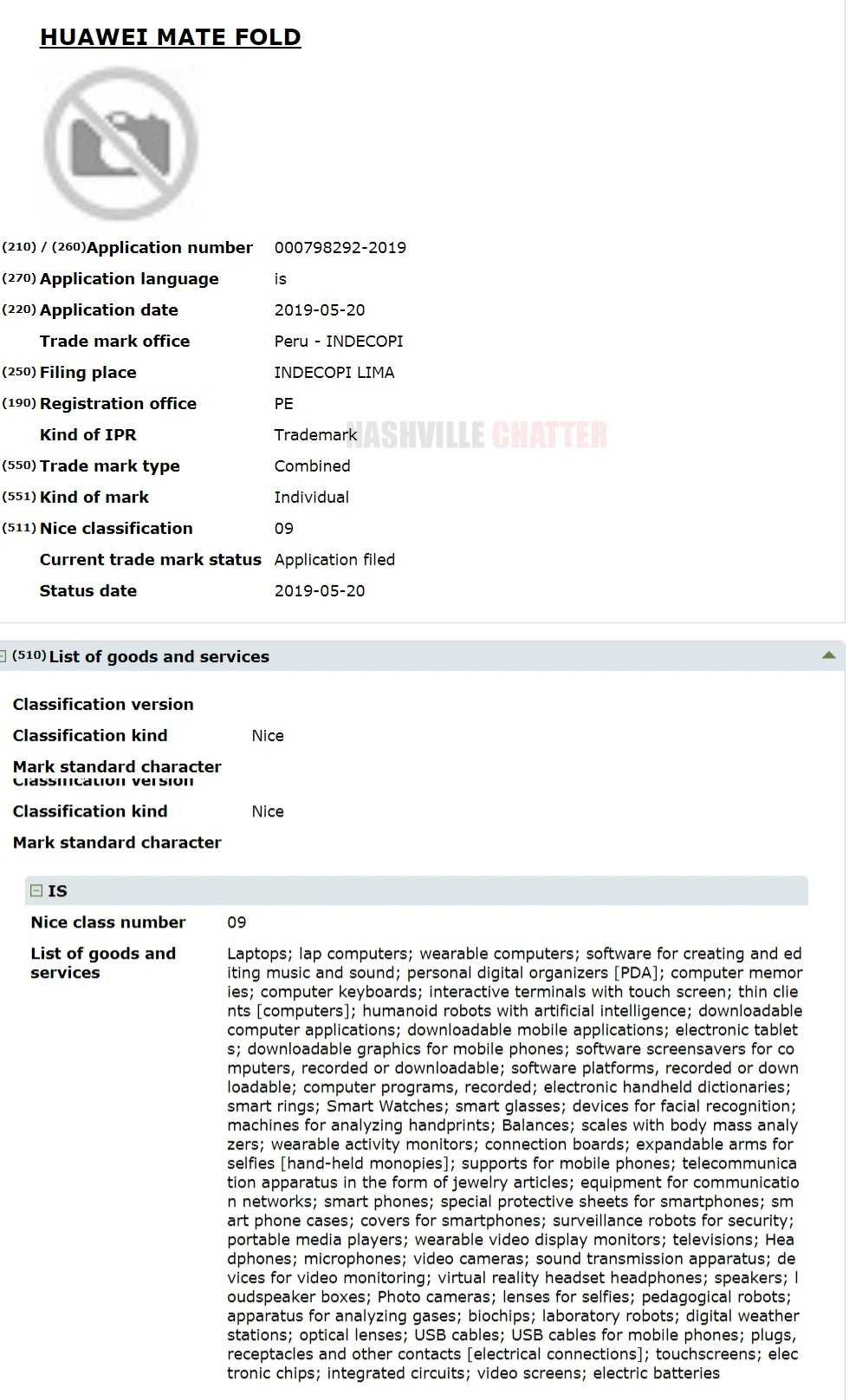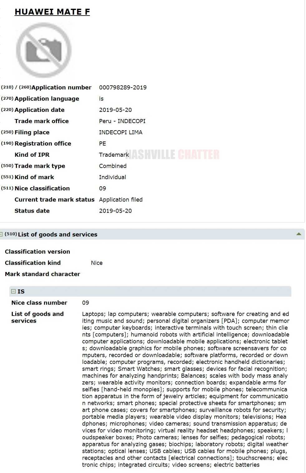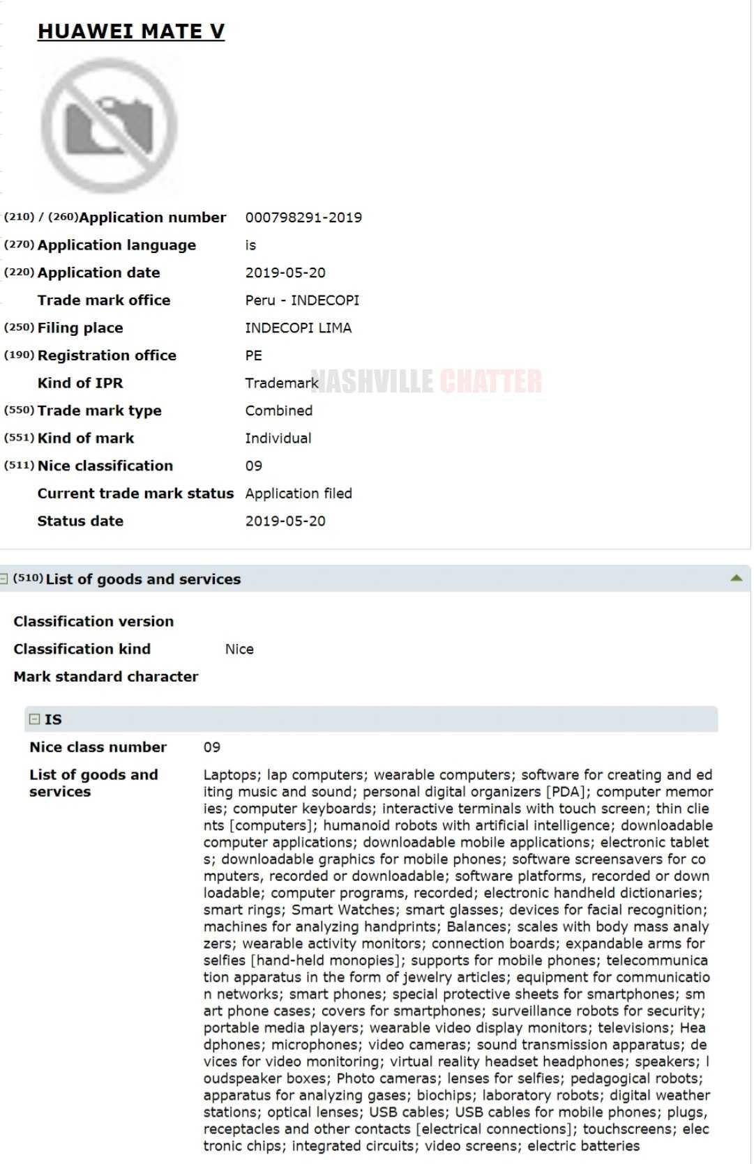 Huawei has trademarked monikers like Mate V, Mate F and Mate Fold names in Peru.