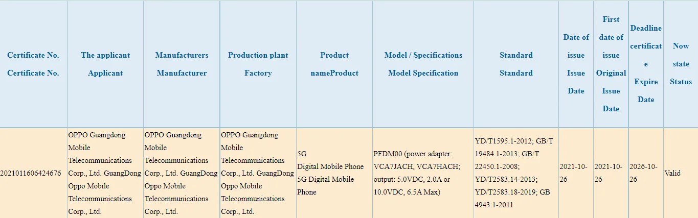 The 3C certification listing for Reno7 Pro reveals that it supports 5G connectivity and 65W fast charging, the same as the Reno6 series. This time, Oppo is unlikely to bring a “Pro+” model in the Reno7 series. So, the Reno7 Pro will come as the top-end model from the new Reno series.