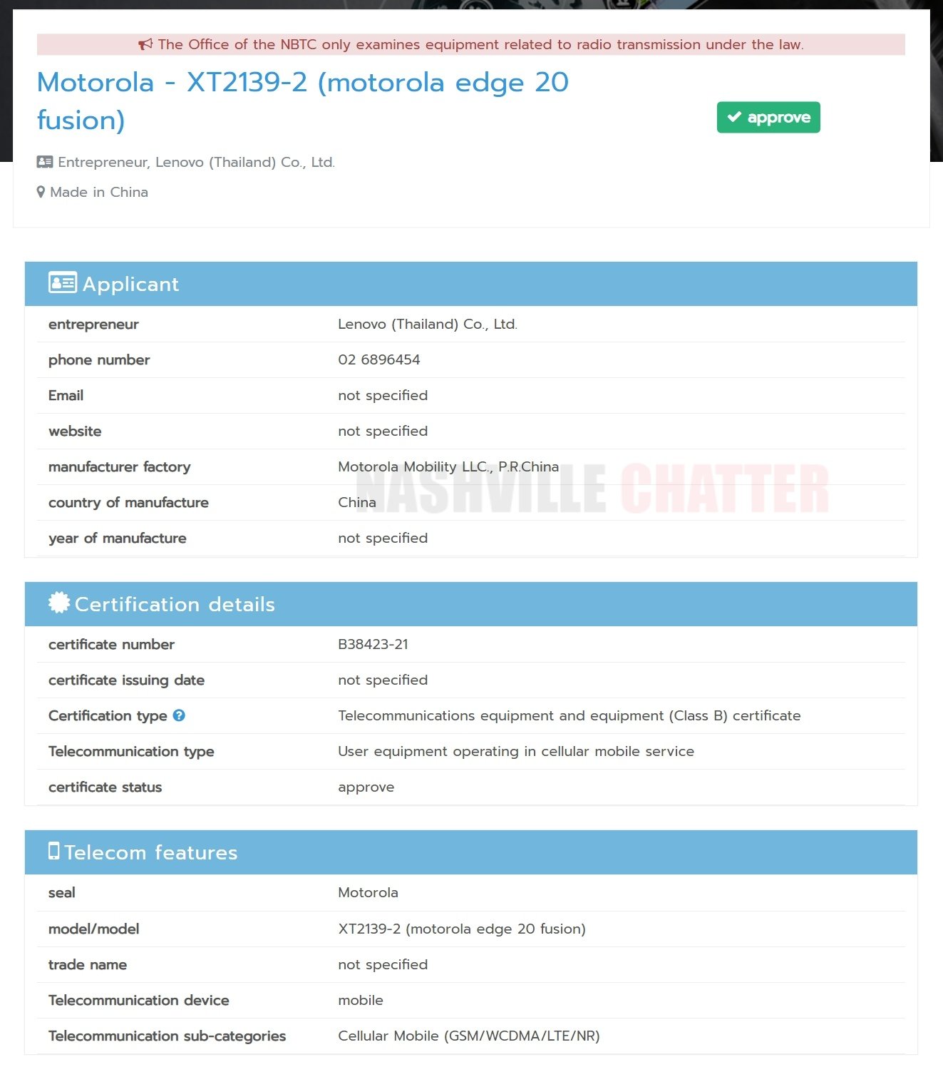 The Thailand certification of the Motorola phone with XT2139-2 model number reveals that it will release as the Motorola Edge 20 Fusion in Thailand. The handset is confirmed to launch in India on August 17. A recent leak claimed that it will be a rebranded Motorola Edge 20 Lite with Dimensity 800U chip.