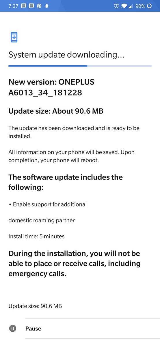 OnePlus 6T it the first OnePlus phone to be available through a U.S. carrier. T-Mobile had begun the sales of the smartphone on November 1. The new roaming related update is the third software update released by the carrier for the OnePlus 6T.